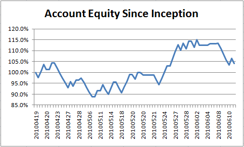 Closed out the week with one win and one loss today. Was nice to see the win after a 4 loss streak! The last little bit of the equity curve looks like it did back when I started. It's only a matter of time for a new high!