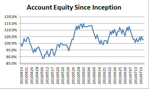 Break-even week this week, which is pretty depressing. I'm slipping out of my daily updates routine, mostly because I've been really tired when the day is over. There are still 10 trading days left in July, and anything could happen!